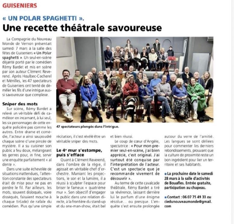 Ici, dans « un polar spaghetti », c’est qu’il s’agit d’un seul en scène àc”l’italienne”, qui nous embarque dans une affaire très sensible, une enquête « al dente » : mais est-ce une comédie ? C’est à voir !